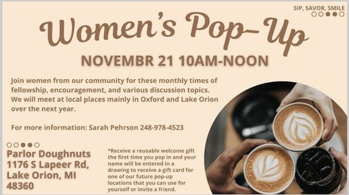 LakePoint CC’s Women’s Ministry is dedicated to the women of our church and the surrounding community. Our goal is to encourage women to embrace the Word and God’s love through testimony while building personal relationships with Jesus and each other. We want to include women in all walks of life, and most of our events are open to women 16 years old and up. LakePoint’s Women’s Ministry has a morning and evening Bible Study that meets on Tuesdays/Wednesdays. The study has a fall and winter semester, and the ministry hosts many social events throughout the year.